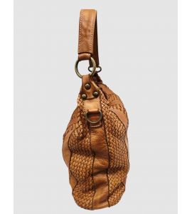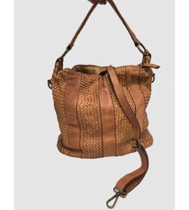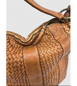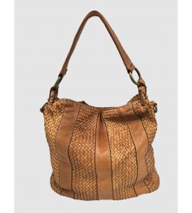 Borsa a spalla in pelle lavata intrecciata con inserti in pelle uniti - CUOIO