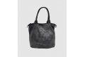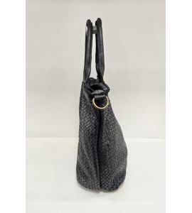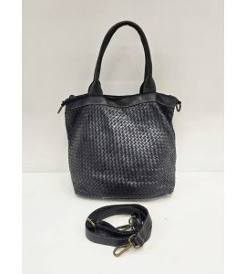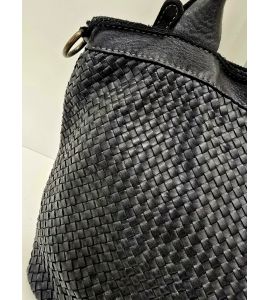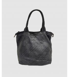 Borsa con doppio manico in pelle lavata con intreccio fatto a mano su entrambi i lati - NERO