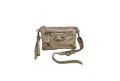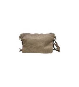 Borsa piccola piatta a tracolla in pelle lavata con tasca frontale e borchie - BEIGE