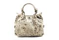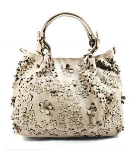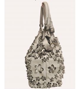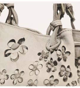 Borsa shopper in pelle lavata con stampa laser floreale - BEIGE