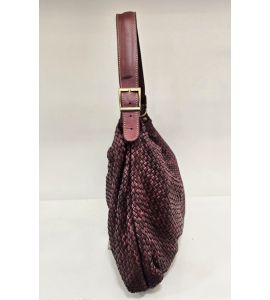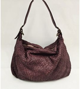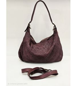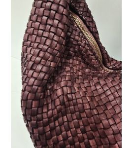 Washed leather shoulder bag hand-woven on both sides - BORDEAUX