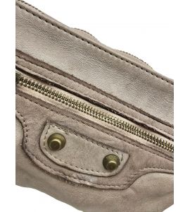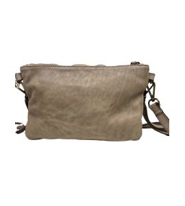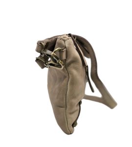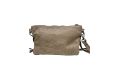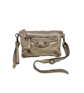 Borsa piccola piatta a tracolla in pelle lavata con tasca frontale e borchie - BEIGE