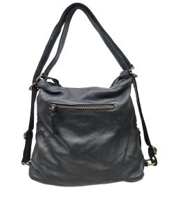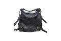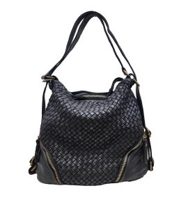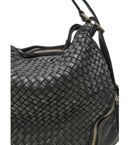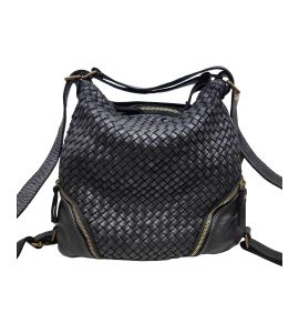Borsa zaino in pelle lavata con intreccio frontale e tasche - NERO