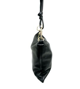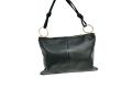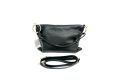 Große flache Dollar-Ledertasche mit Schulterriemen - BLACK