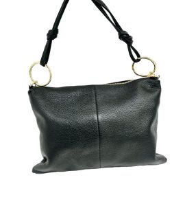Die große, flache Dollar-Ledertasche mit Schulterriemen - SCHWARZ bietet reichlich Innenraum für alle wichtigen Dinge, die man den ganzen Tag über braucht.