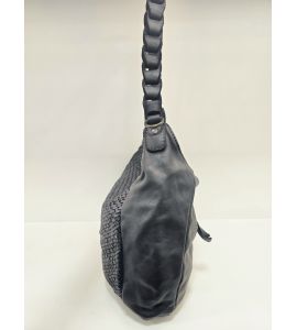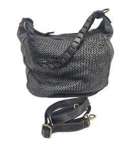 Diese handgewebte Tasche aus gewaschenem Leder mit langem, gefrästem Griff ist das perfekte Accessoire für alle, die Stil, Qualität und Funktionalität in einem suchen. Die weiche, samtige Textur des gewaschenen Leders verleiht der Tasche einen luxuriösen Touch, während das handgewebte Design ein Element der Originalität und Handwerkskunst hinzufügt. Mit ihrem geräumigen Innenraum und dem praktischen langen Henkel ist diese Tasche ideal, um sie zu jeder Tageszeit bequem zu tragen, und sorgt für einen makellosen Look und große Zweckmäßigkeit. Verleihen Sie Ihrem Outfit einen Hauch von Klasse mit dieser raffinierten schwarzen Ledertasche.