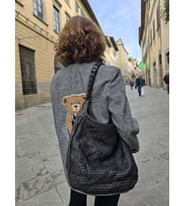Handgeflochtene Tasche aus gewaschenem Leder mit langem, gefrästem Griff - BLACK