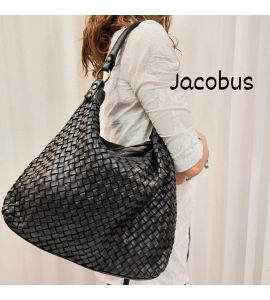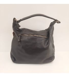 Tasche aus gewaschenem Leder mit handgewebter Verarbeitung auf einer Seite. Hergestellt in Italien - SCHWARZ