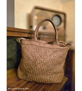 Tasche mit doppeltem Henkel aus gewaschenem Leder mit handgefertigter Flechtung auf beiden Seiten - TORTORA