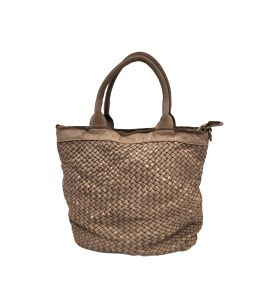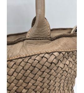 Diese Tasche mit zwei Henkeln aus gewaschenem Leder mit handgeflochtenen Flechtungen auf beiden Seiten ist das perfekte Accessoire für alle, die einen eleganten und raffinierten Stil suchen. Die taupefarbene Farbe verleiht jedem Outfit einen Hauch von Klasse, während die handgefertigten Details diese Tasche einzigartig und wertvoll machen. Dank der beiden Griffe lässt sie sich bequem in der Hand oder über der Schulter tragen und passt sich so den Bedürfnissen jeder Gelegenheit an.