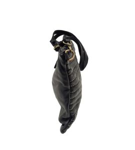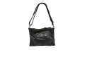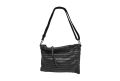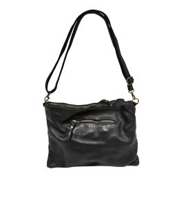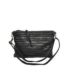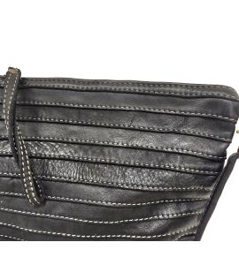 Tracolla piatta in pelle lavata con cuciture a rilievo fatte a mano - NERO