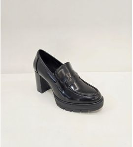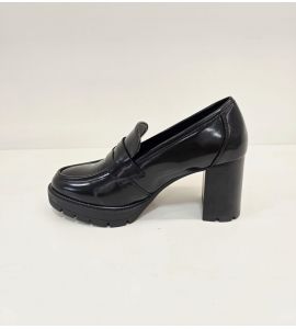 Damen Mokassin mit breitem Kunstlederabsatz - BLACK