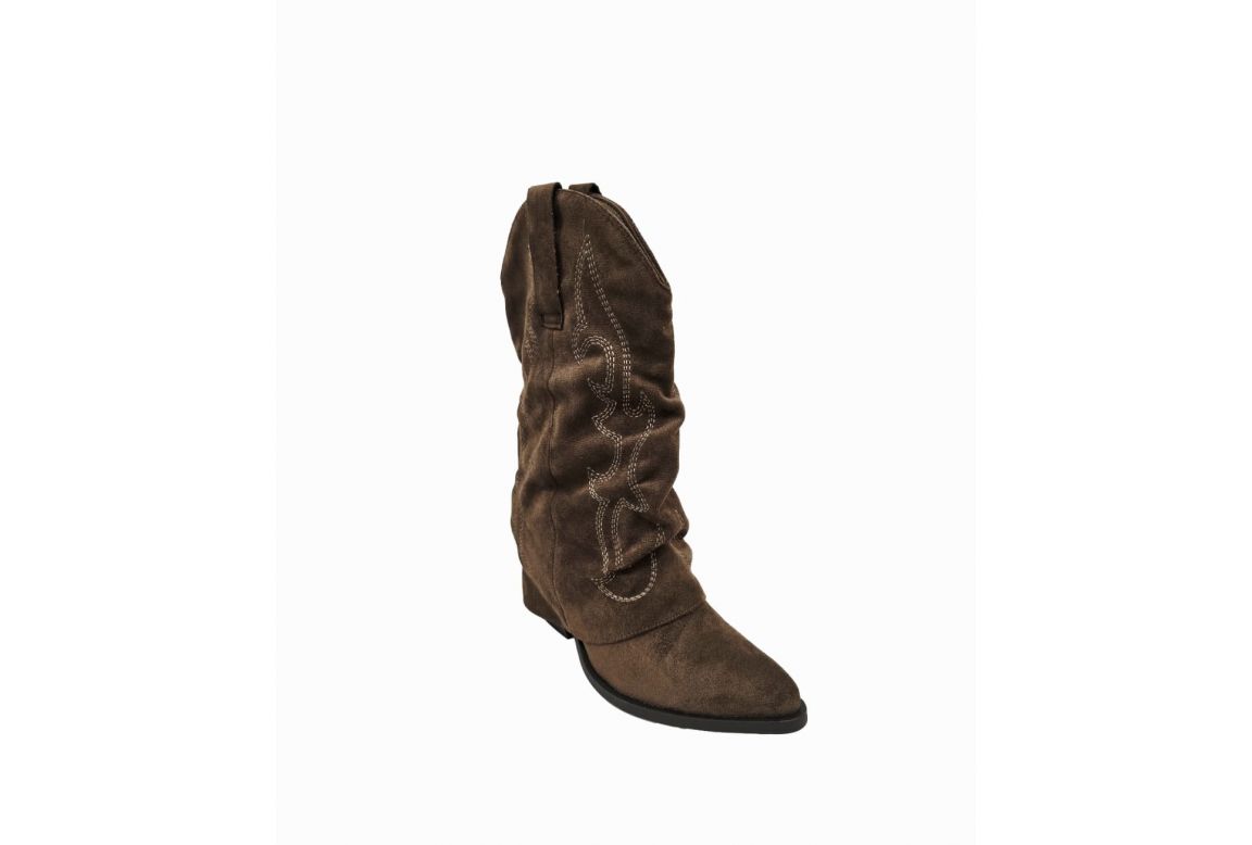 stivale donna in ecopelle scamosciata con ricami a rilievo - BEIGE