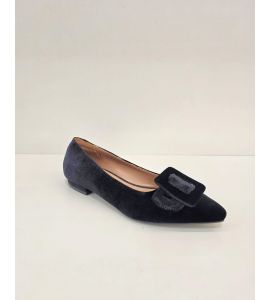 Ballerine pointue en velours avec accessoire à boucle - NOIR