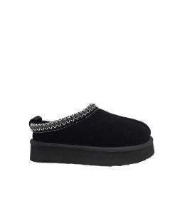 Chaussures ouvertes à l'arrière en cuir/suède avec fourrure intérieure pour femmes - NOIR