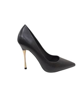 Décolleté allongé en faux cuir avec talon aiguille doré - NOIR