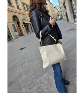 Grand sac en cuir à dollar plat avec turolla - BEIGE