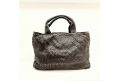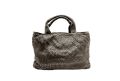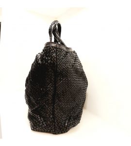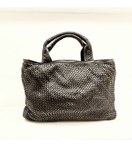 Sac en cuir lavé tissé à la main avec double poignée. Fabriqué à la main en Italie - NOIR