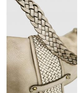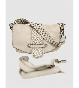 Borsa a spalla in pelle lavata con pattina e riporto intrecciato - BEIGE