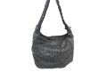 Borsa in pelle lavata intrecciata a mano con manico lungo lavorato - NERO
