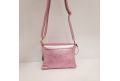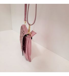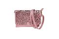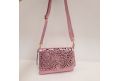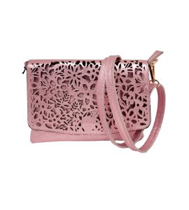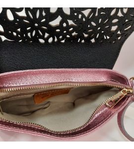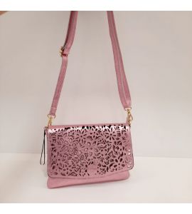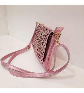 Borsa modello tracolla in pelle laminata con lavorazione laserata. Made in Italy. -ROSA