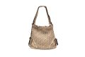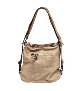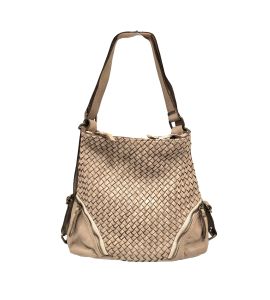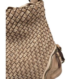 Borsa tre in uno. In pelle lavata con intreccio frontale fatto a mano- TAUPE