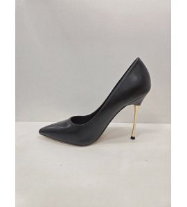 Decollete in ecopelle dalla linea allungata con tacco a spillo dorato - NERO