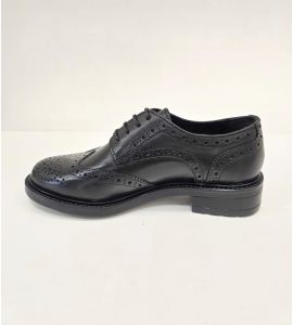 Allacciato donna in pelle stile parigina con lavorazione a coda di rondine - NERO