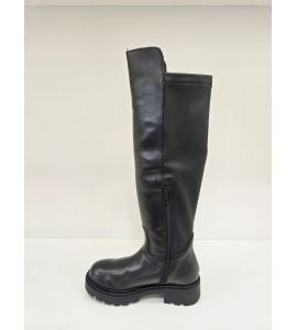 Stivale donna in pelle alto di gamba con inserto elasticizzato - NERO