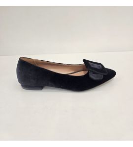 Szpiczaste aksamitne baleriny z klamrą - CZARNE