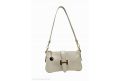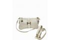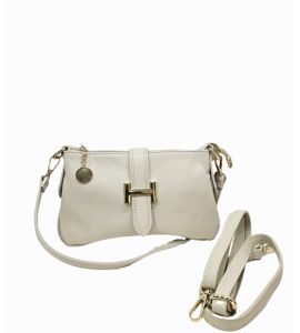 Borsa piatta piccola in pelle dollaro con pattina e accessorio dorato - BEIGE