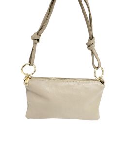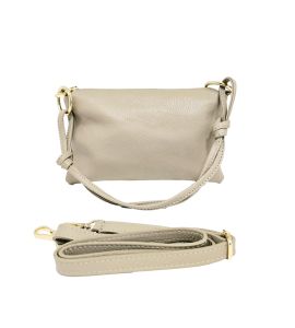 Mała płaska skórzana torba - BEIGE