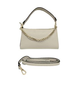 Mała skórzana torba na dolary o półsztywnym kształcie "gianduiotto" - BEIGE