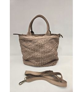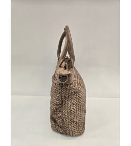 Ta torba z podwójną rączką ze spranej skóry z ręcznie tkanym splotem po obu stronach jest idealnym dodatkiem dla tych, którzy chcą eleganckiego i wyrafinowanego stylu. Kolor taupe dodaje klasy każdemu strojowi, a ręcznie wykonane detale sprawiają, że torba jest wyjątkowa i cenna. Dzięki dwóm uchwytom jest wygodna do noszenia w ręku lub na ramieniu, dostosowując się do potrzeb każdej okazji.