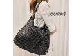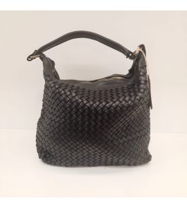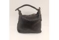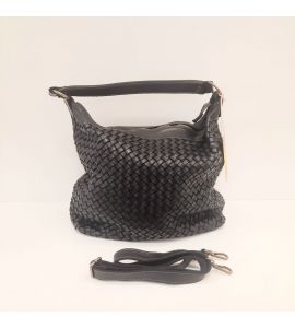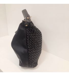 Torebka ze spranej skóry z ręcznie tkanym wzorem po jednej stronie. Wyprodukowano we Włoszech - BLACK