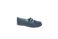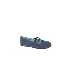 Ballerina in pelle con elastici colorati e cuciture a contrasto - BLU