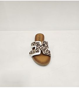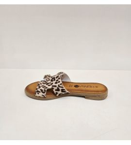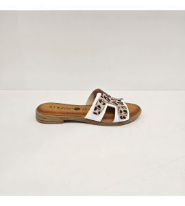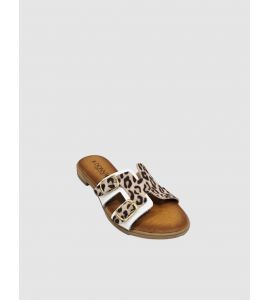 Ciabattina donna in pelle con fascia maculata - BIANCO