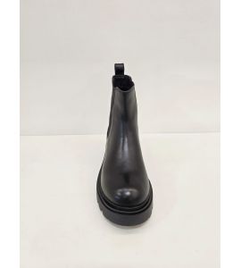 Women's leather ankle boot with elasticated side inserts - BLACK